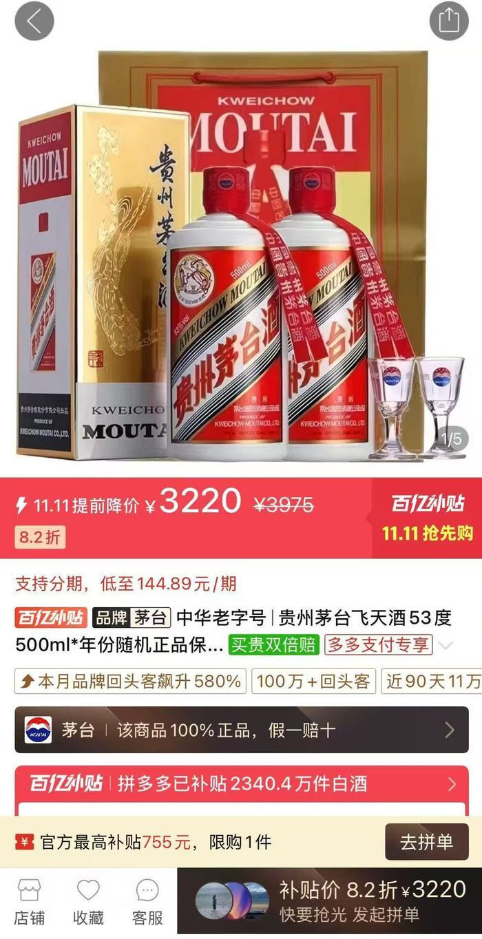 现在的飞天茅台批发价比年初的2200多元,已经跌了超过20%。在一些电商平台上,叠加双十一补贴,成交价还要更低。市场上的恐慌情绪能感觉到,投资者和黄牛的信心都在经受考验。有人开始讨论茅台的"金融属性"是不是在消退,会不会回到1499元的官方指导价。